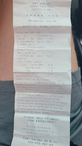 WORST SERVICE EVER- I purchased a ring online from kay, not the outlet, a stone fell off and they told me to take it to any kay or kay outlet store so they can send it back to repair, this was back in april 2023, they said they would call me back when it was ready for pick up, saying it fell into warranty and they never did, i called a few months later and they said that the piece was sent back to the main place because it wasn’t picked up (THEY NEVER CALLED) so they told to me to call back in a few weeks to see if it was in store, I called and was told it was ready, i went in for pick up today (FINALLY) and they ring was not even repaired because it didn’t go through the warranty (that i was told before that it did) anyways i took my ring back because i didn’t want to deal with it anymore, the ladies at the store are super rude and have zero customer service attention, i would never buy anything from this store specifically nor the...