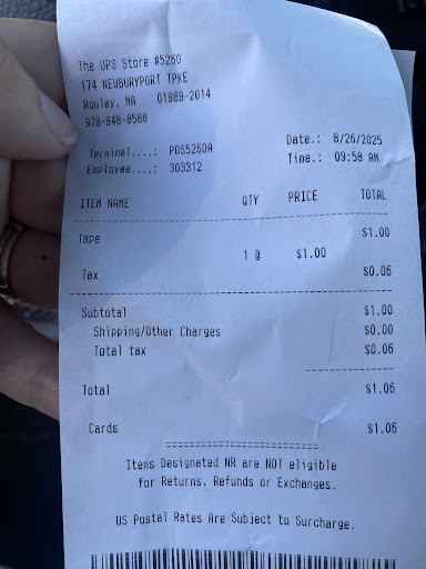 Read moreI recently received some paperwork via UPS overnight service. The company that I needed to return the paperwork to provided me with a return shipment label but no return envelope. My UPS driver said that he didn't have any on his truck but told me to run up to The UPS Store in Rowley and I could get envelopes there no problem. So I drove up to Rowley to The UPS Store and told the man behind the counter that I needed a UPS overnight envelope so that I could return my paperwork. I also told him that I already had a return label. He told me that they don't give out UPS envelopes. What?! how am I supposed to utilize the UPS overnight service if I cannot get an envelope? He told me that it was only for their customers that shipped from that location. I told him that the paperwork was back in my office along with my shipping label and that I was planning on dropping it at a UPS drop box. He told me he couldn't give me an envelope! A basic understanding of business would tell you that without envelopes you are not going to be shipping many items and it is not a good way to run a business. This simple concept seemed to be lost on this person. Imagine having a customer who wants to do business with us with you and you tell him no. Unbelievable! I will never use UPS for my shipping needs. FedEx has never let me down and has plenty of envelopes.