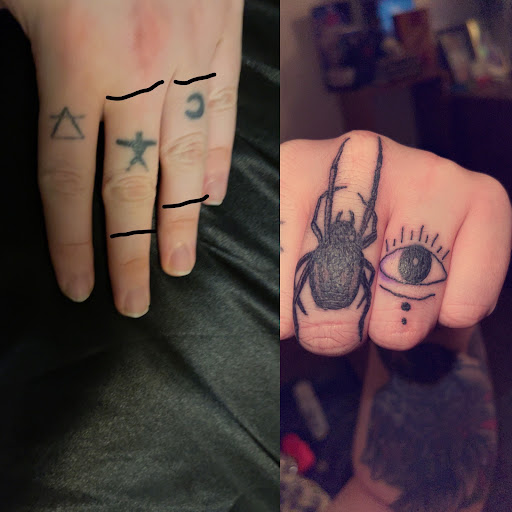 Read moreWas really tired of two of these finger tats I received a few years ago. I was able to get them covered up no problem here. A bonus is the horror collection they have. The whole time you’re there your constantly finding new things somewhere they cover every horror genre from the classics to the new. The horror collectio is great. Relaxing atmosphere, comfortable seating. 10/10 spider and eye...