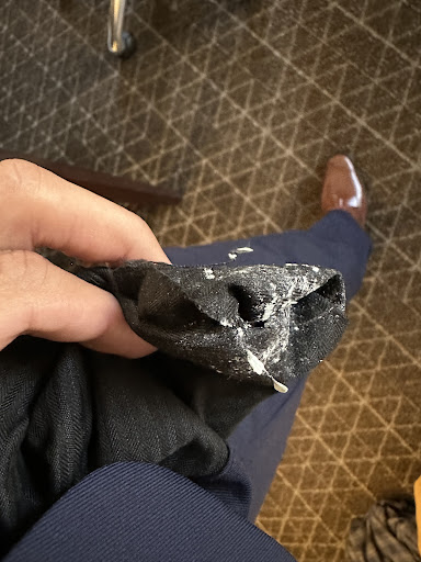 Read moreI gotta say… I had high expectations between reading google reviews and the referrals from other peoples weddings, and personally I’d never refer this place to anyone after what we went through. I recently got married a few days ago Thursday and from day 1 when my groomsmen and I went for our tux fittings, it was awful. There was one guy there who was fitting us and just had the worst attitude from the minute we stepped in. It was so bad we were contemplating leaving and going to men’s warehouse right up the road. Fast forward months later when our tuxes came in… 4/6 of them were completely wrong. One of my groomsmen had to get 3 different jackets before he got one that fit, my dads shoes were too small, pants were way to big and jacket was too small, they mixed up dress shirts for one of my guys so he had to go to Walmart the day of the wedding to buy a new white dress shirt and one of my groomsmen had chewed up gum in his pocket! Yet, we all had to pay a $9 fee for tux cleanings (what’s the point cause clearly they’re not being cleaned after use). I can honestly go on about other issues we ran into but but at this point the wedding is over with and the tuxes were returned so all I can say is, for a $250+ rental, go somewhere else cause Sarno dropped the ball big time and will never see our business again (picture attached is the gum in my groomsmen’s pants pocket he found the day of...