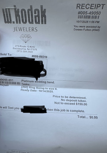 Read moreTerrific shop! Everyone is always very helpful for numerous issues... First, there’s a beautiful selection of jewelry, but that’s always the easy part at a jewelers as that is their primary purpose. However, it is how they handle the “small” jobs that really determines the merit of an excellent business and Kodak’s in Succasunna deserves the 5 stars. The staff is just as helpful and pleasant for a battery replacement as they are selling diamond earrings. I recently took three gold bracelets in for repair and couldn’t be more pleased with the results on the two that I decided to fix. The process was professional, thorough, and very quick, including the quality of the repair. Additionally, when I decided to scrap the third bracelet, the value substantially reduced the cost of repairs for the other two. Although this is the first time that I am taking the time to do a review, it is not the first time that Kodak in Succasunna has helped me... and as I already said, it is that helpfulness with the small stuff that makes all the difference! I definitely recommend this jewelers for both merchandise...