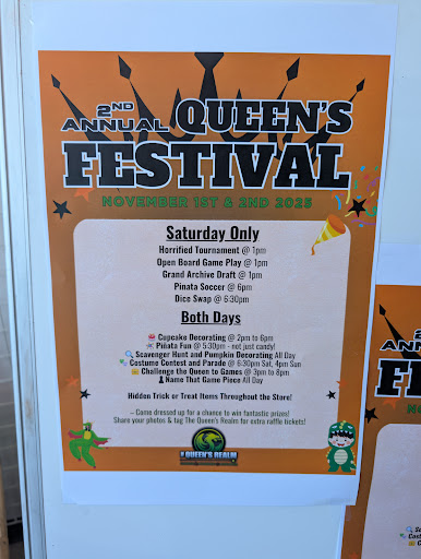 Read moreI have two young kids getting started into Pokémon and D&D. I personally know nothing about it, but we've been looking for a place for them to play and learn and have fun. After being somewhat underwhelmed by other card shops, we found Queen's Realm. It's huge! Very inviting. The owner, who is a very engaging and charismatic woman, presents it as a community center rather than a game shop. They even have Teen events that cater to younger crowds which was a huge plus for me. We stopped for awhile and played some games in their free board game library. I definitely feel good about bringing my kids here to start their...