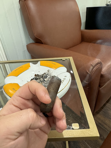 There is a large walk in humidor, a cigar lounge with TV and comfortable chairs, and a big backyard patio with a fire pit and even live music.