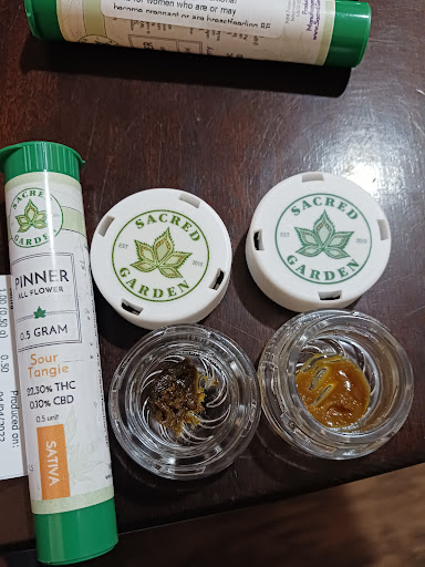 RECREATIONAL - The cannabis is good. So prerolls obviously we're good!👍 Wouldn't recommend the chocolate bar or saltwater taffee edibles (way underdosed) to anybody. I also got 2 of their brand sacred grounds 'sugar wax.' Believe it or not the left one is smokable and does the job with meh flavor, but the one on the right tastes a gross gross taste🤢 and sparks everywhere like solvents we're used and not purged correctly. I'm about to throw that one away. The budtender was great and the vibe but anything but the bud was trash. Did not try the bloom live resin (only 350mg) vape cart because so expensive so can't...