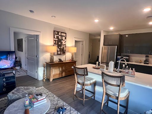 The Parker is a lovely place to live. It is centrally located in Rutherford, in the middle of excellent restaurants, local shops, and businesses like a beautiful Pilates studio and many salons. The building is well-kept and stylish, and the building is cleaned daily or near-daily. There are some really nice amenities in this building and the sister building next door that residents have access to like two gyms, different common / working areas, and a nice outdoor patio with BBQs for when the weather is warm enough to enjoy it. There is also a parking garage and I particularly love the package concierge, similar to Amazon lockers, where delivery services leave your packages for extra security.