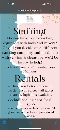 Read moreWe recently hired Maeve's for a birthday party, and to say we were thrilled with their service would be an understatement! From start to finish, their team was exceptional, making our celebration incredibly smooth and enjoyable for everyone. The convenience of having them set up in our kitchen was fantastic. They then expertly circulated with an array of amazing finger foods to all our guests outside, impressively keeping everything tidy by discreetly picking up trash as they went. This attention to detail did not go unnoticed and allowed us to fully immerse ourselves in the party. We opted for their Maeve mobile bar, and it was a definite highlight. Our bartender was an absolute gem – friendly, fun, and a true professional. She crafted delicious drinks with a smile and effortlessly fit into the lively atmosphere of our party. Many of our guests commented on how much they enjoyed chatting with her while she mixed up their cocktails. What truly set Maeve's apart was their professionalism and the seamless execution of the entire event. When the party was over, they cleaned everything up so thoroughly it was as if they were never there. Every member of their staff we interacted with was so nice and dedicated to making our event a success. If you're looking for a top-notch mobile bartending and catering service that will elevate your event and allow you to be a guest at your own party, we wholeheartedly recommend Maeve's. We could not be happier and will be using their services again...