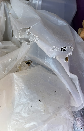 6)- early may, I went to my storage unit to check in and place some winter related items in storage- to find my storage unit smelled strongly of rat urine mixed with moth balls. I noted rodent urine/feces all over my belongings, holes chewed thru items and moth balls had been placed inside my unit on the floor (see picture below) without my permission. My cut lock was In pieces on the ground still, from when I āleft the door unlatched with the lock onā while away FL. See photos. And, no, I wasnāt storing food items or anything that would attract rats.