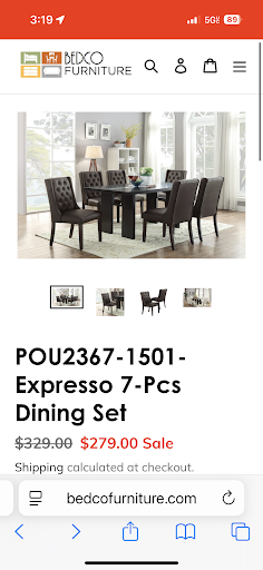 Read moreIf I could leave a 0 star rating I would! I was going to purchase a dining room set that was clearly listed as a table with six chairs for $279. When I called to verify, I was told it did not include the chairs, even though the listing clearly stated otherwise. I asked for a manager, but was told none was available and to call back. After calling back multiple times with no answer, the listing was suddenly deleted and relisted for $999.