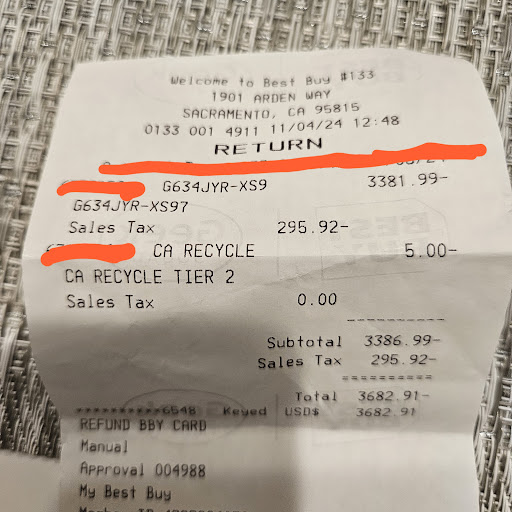 I will resolve the unreimbursed money directly with my bank and Amazon. I an not concerned about that because I know I will get it back. The manager at the natomas best buy store needs to receive some serious training and coaching from someone as she has no idea on what her own company instructions say. She definitely needs to get some extra training on how to be a good manager. The communication skills were terrible. She resorted to insulting me as a means to have me leave the store.