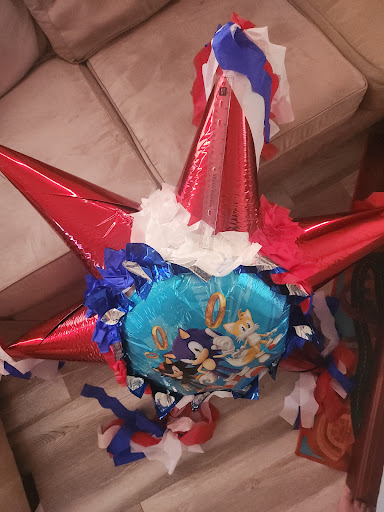 More pinatas than you could ever imagine in different sizes, shapes and styles as well as other great party supplies, favors, gifts! I got the sonic pinata that I needed and ended up with a bigger one for the same price as another shop (and cheaper than Amazon) $30 -- photo below next to the couch for size reference, it's about 4ft tall from spike to spike, the center circle being...