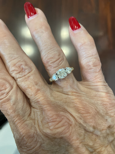 The morning after my fiancé proposed, my finger was a bit swollen so we went to Larry right away. He resized the ring and took into account how my finger is two different sizes (my knuckle is larger than my actual finger and that is why I was having trouble with the size). He got it to a better size and promised to have it done in a few days. He was a miracle worker and got it back to us in less than 5 hours! He took the time out of his schedule to finish my ring because he knew it was hard for me to be away from it so soon. I couldn’t have been more appreciative. He has emailed my fiancé and has given us a timetable to check back in with him to reassess the fit since the swelling will be gone.