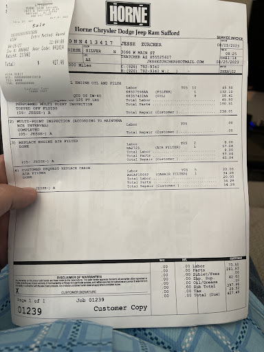 Read moreVery deceiving in there marketing brochures and the way they act once they have lured you in. They sent out these flyers in the mail that had a scratch off ticket for prizes. My 88 year old boss received one in the mail and he scratched it off and it said he one $2000.00 dollars! Well he called over there and they told him that yes he had won the prize, I thought it was too good to be true so I made him call back, again they told him that yes he had won, the next day our store manager called Arizona Dodge and spoke with someone there and explained the situation and again she was told that "Yes" he had won the money, September 15 I drive him from Tucson AZ to Safford AZ, when we get there we are greeted politely by a salesman named Cody, once he is told the reason for our visit he tells us that the contest rules have changed and that we had to match a number on the prize board they had inside, nobody had mentioned anything about matching a number when the long distance calls were made, the sales associate got very sarcastic with us and another Sales Associate intervened and gave my boss a $2.00 bill for his efforts, What a joke, deceptive advertising is not a good business and preying on the elderly should be a crime!. Avoid this dealership, Arizona Dodge a business...