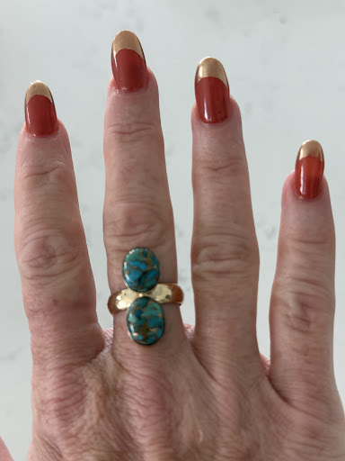 I am in absolutely in love with my first custom piece: double oval turquoise stones on a 14k gold band, which I designed with their assistance and the extra guidance of their in-house jeweler. I was even able to use some of my old gold to create this new piece. I am beyond pleased. So much so, that I have already commissioned some other new pieces and put a lovely pearl pendant necklace on layaway.