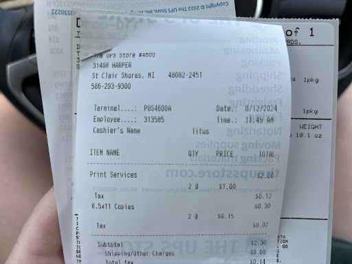 Read moreI come here to ship packages all the time, everyone is always so nice and helpful. Today our printer at home decided to stop working but I knew I could get help printing at the store. The young man that helped me was so ungodly rude. Tried telling me it would “take forever” to print here, and I said okay. While waiting for me to email over the packing slip and shipping label, I listened to the kid literally sigh MULTIPLE TIMES. He tried telling me I didn’t send the email through 3 times simply because he had absolutely no paitence. As someone who works in customer service, this is the last person you would want interacting with your customers. I was made to seem like an absolute annoyance, left feeling absolutely horrible. All I was trying to do was return an item from our baby shower registry, and being 38 weeks pregnant, I felt I was treated absolutely horribly. Attached is the receipt with the workers name on it, something needs to change. I just wish I had waited for the other women helping, she was so nice to the people she...