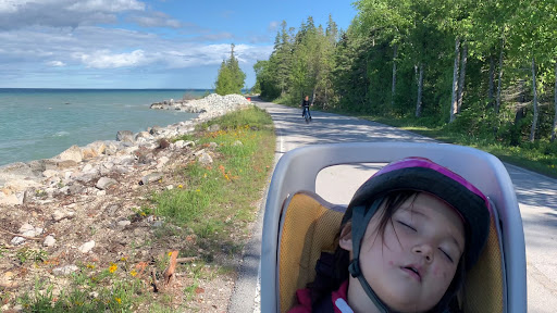 It's something I heard about for years from my in-laws, taking the ferry out to Mackinac island. We got the deluxe tour that went under the bridge and the story behind that. It was chilly on the ride out but once on the island it was pleasantly warm and we paid to have our bikes taken over. We couldn't go all the way around the island because of road work, but yeah, no cars, only bikes and horses. Personally I didn't care for the horses dropping apples everywhere but they did have crews cleaning up behind them. it's a cute day trip, quite a bit of shopping and dining at the docks. We rode part way around and then hiked the bikes up over the summit to the other side, stopped at the fort and cemetery on the way. If you're fit and have a modern bike maybe you can ride to the top but i couldn't and My wife didn't even attempt it, well maybe parts of it. anyhoo it's all down hill from the fort so hang on to...