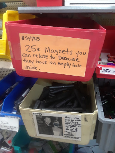 It's been a while since I have been out, and a longgggg time since my last review. I moved had surgery and now finally back on my feet, slowly but back, but enough of me for now, on to my finding. For those of you that know me I love not only to eat, (not that the little budda belly gives it a way!), I love to shop. My partner in crime, whom I have moved in with, for years has been telling me about this place Ax-man. So we went, this place if you have never gone, you gotta check it out. It's like a garage sale/flea market in a building. There is so much stuff for almost any thing you are looking for. I couldn't even begin to list everything, but just a little bit here, pet stuff, posters, BBQ utensils, numerous colored duct tape, biohazard stuff, electronics, bins of screws and bolts, nails, wheels, signs, cups, tickets 🎟, amount stickers- like for garage sales, wire, rope in colors(cord) and weight, sockets, puzzles, small baggies(don't ask 😂) ok just kidding, but small ones for beads, jewelry any thing small, magnets, bearings, speakers, cassettes, crt tunes, call on these they might not have at certain stores, for those of you youngish ones out there those are for the old school tv's, backpacks, glass bottles and cork stoppers, there is so much stuff, so if you have a few hours and want to look for something you have been looking for, or just want to check it out, definitely go to this place because it blew my mind and was allot of fun. And the staff, they are friendly, great and knowledgeable. They know where you can find out of the thousands of items, (probably more), what you are looking for. ...