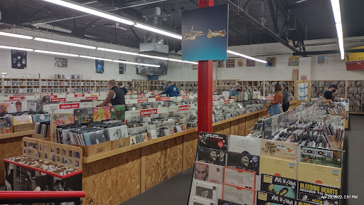Shopping there is a lot of fun. Good atmosphere with all types of music being played at any given time. Movies are in the front of the store, used & new CDs with new vinyl sections in the middle, used vinyl in back, and cassettes along with shirts and other memoribilia along the walls. Listening stations for records & CDs are in front of the registers. Everything is sorted out A-Z by genre except the New Arrivals section. Many a time have I lost myself for a couple hours or more just flipping through Everything, and this place is hard to walk out of without spending around $50, haha.