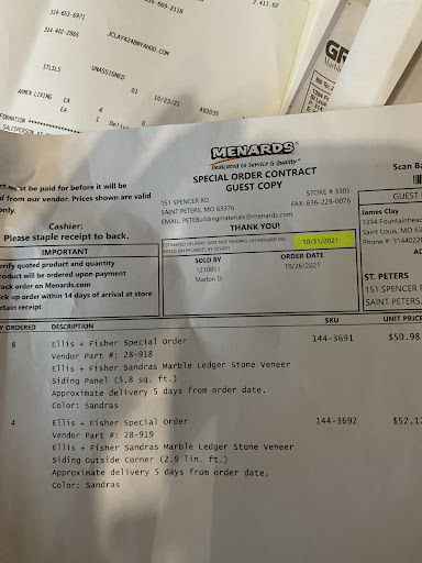 Read moreOrdered over 5k in overhead garage doors, material was delivered last Monday. Stsrted installation Tuesday realized Wednesday I was missing parts. Called Thursday spoke to someone in delivery told me it was special order ge would look into it and get back to me that afternoon or evening at the latest. Its Sunday and still no call, message, or anything. I have 2 10ft doors with out locks and an 11ft door I can't operate either because it's missing brackets, cable anchor brackets and no locks... I know you guys are able to lock up your buildings every night. BUT IM NOT I understand things happen but when a mistake is made I own it, I fix it, I stop whatever I'm doing now to go back to your problem and get it resolved. Update!!! 2/13/21 It is now been 4 months since receiving my doors minus the parts missing. I have repeatedly called and called and emailed the store finally emailed me some piece of paper to fill out in regards to my complaint And told me they were not gonna be able to help me Now mind you as of today I still have a bay door on my warehouse unusable because this 11ft door required a special double track system up top to open. After going back and forth with the manufacturer for December, January, and now Feb. They have finally shipped the parts been waiting 2 weeks, I called the garage door company yesterday and they said the parts made it to the store on the 10th... no phone call from them I called yesterday and asked they said they couldn't find anything was transferred to 3 people and Tim the manager said he would call back. Called back yesterday at 5pm said he found the parts I could come get them. I send a truck and a guy up there today to pick up parts and the delivery counter says they aren't there the order was canceled or not paid for. đ¤ unbelievable.... I call up there ask for Tim and he is at lunch tell me to call back later. At this point I'm beyond frustrated I just want to use my garage door. If you open it it will fall off the tracks. 30 mkns later Tim appears and they have the track parts after all. I had even sent them photos of what was missing and 4 1/2 months later I'm finally getting the rest of the order I paid for in advance. I WILL NEVER EVER USE MENARDS, BUY FROM MENARDS, I WILL DRIVE OUT OF MY WAY TO GO ELSEWHERE. IN MY OPINON I FEEL THEY ARE INEPT, UNORGANIZED, AND PRETTY...