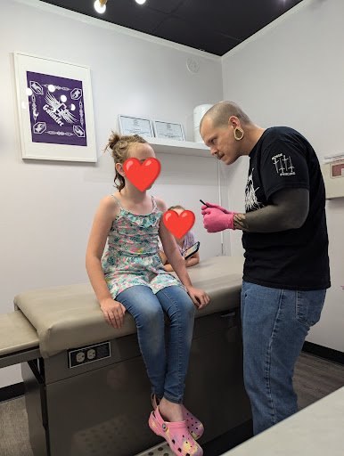 I brought my 8 year old daughter here to get her first ear piercings and I was blown away by the entire experience, namely with Joshua the piercer. First, if you're bringing in a minor, you need to provide proof of guardianship before they can do the piercing. Once we took care of the proper paperwork, Josh let my daughter pick out the earrings she wanted to get pierced with and explained they would need to be left in for 6 months. He then took about 10 minutes to fully sterilize the room for the piercing. He then had my daughter sit up on the table and said doing the placement would take the longest part because he's very particular and wants to make sure both sides are marked symmetrically. He showed her the black dots and made sure she liked the placement, then he sterilized her earlobes and explained how it would go, from the needle to threading in the earring itself and adding the back. He also made sure it was very clear SHE was in charge, and if she didn't want to do it, or if she got one done and needed a break or if she wanted to come back another day to finish, she could. He joked around and spoke lightheartedly to make her (and our family) feel extremely comfortable, and he included her in conversation and in decisions, making her feel the choice was completely in her hands. Then came the piercing part, where he had her lie down on the table and do one ear at a time, giving her kudos for doing so well and saying it was totally okay that she needed to take some time in between. Afterwards, he made her feel brave and strong for getting her ears pierced, and even offered her (and her little sister) a frozen popsicle for being so tough. Each step in the appt (which took about one hour total) reassured us that this business does everything ethically and officially, and that above all, it's CLEAN and they take the health of the piercing into high consideration. Not only was everything extremely sterile during the piercing itself, but Josh went into great detail on what to do and what not to do with the earrings once we went home. It's now been a week since our appt and I'm pleasantly surprised my daughter has had no pain after the initial appt (my Claire's piercing days certainly had different outcomes) and it's healing amazingly. I would recommend this place for ANY age because the experience was 10/10. Thanks for providing such a safe space...