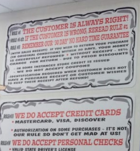 Also pictured are the store policies and district manager's info (he did not respond) that was displayed at each register. After this experience, I have to assume they post the district leader's contact info at each register due to the amount of problems coming from this store. Serious change of management...