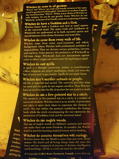 I've always really loved this store for their great selection of magical tools and items despite the fact that over the years it has started to feel more and more like a tourist trap. Their staff all seem very nice and knowledgeable on most beginner level topics which was nice when I was just starting out in my practice years ago. However recently I noticed one small thing that I thought was weird and it's rather nitpicky but I still believe it's a valid criticism. With my purchase recently, the staff placed a few paper advertisements, likely aimed towards informing tourists on witchcraft and the services and products that the Hex/Omen stores had to offer (books, psychic readings and services of that nature). What I was not super happy about was the pamphlet they included that was titled "The Witches Dos and Don'ts". At first, I was pretty happy that they were attempting to provide information for non-practicing tourists but then I read it and realized that some of the information was inaccurate. One of the examples being in the first section titled "witches don't do evil" and then explained this statement and one of the explanations given on why apparently witches cannot and do not practice baneful magick was a quote from... the WICCAN rede? This is inaccurate and honestly pretty annoying to see as a non-wiccan. Not all witches are wiccan. There were more inaccuracies in this pamphlet and it was a small annoyance to see as a seasoned practitioner. I get that they were likely trying to win over the skeptical and fearful tourists of unaccepting religions but it is still inaccurate none the less and this particular pamphlet should not be included unless updated. It makes me worry that any beginner practicioners who may see this will think that they need to be boxed in when it comes to their practice. I feel that information can be provided in a more generalized way rather than misinforming people who are likely already wildly misinformed on witchcraft and pagan religions in the...