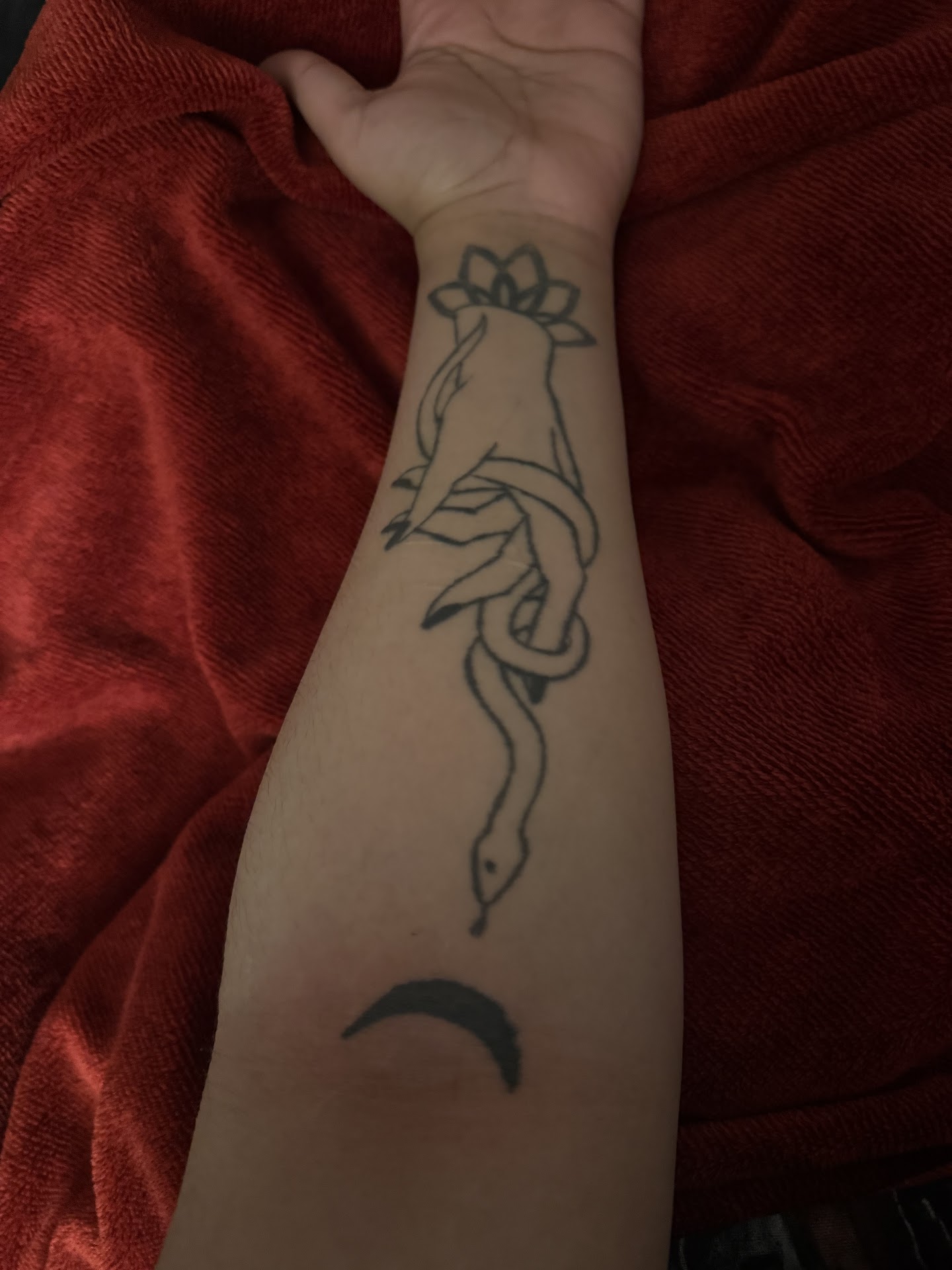 ( the photos are the before and after of the tattoo I got touched up/covered up with Benny! It honestly looks like a new piece and we still have more work to do on it. I don’t have any photos with the tattoo Lily is working...