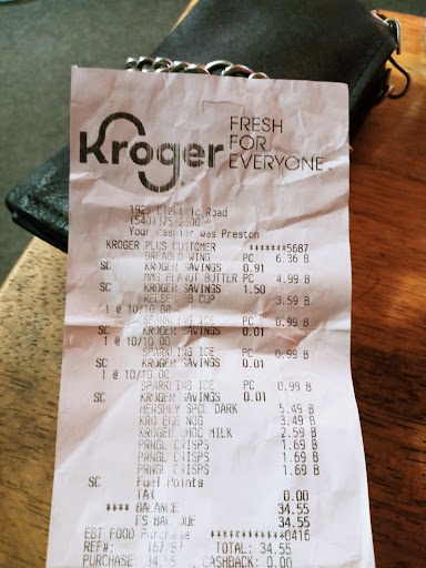Read moreI have said over and over again that I won’t shop at Kroger any more for groceries. They never have people to check you out. Today they had one when it was time for people to get off from work. The self checkout lines were long. About every other time I scanned an item the machine I was using said ‘make sure you scan your item before putting it in the bag. Then, I had a coupon and had to wait for the person to come and clear it for me. Why do you have to have someone to come approve your coupon? I am fed up with Kroger. Even though Food Lion is further away, I am going there. The isles are wider and the store is cleaner. They always have several checkout people who are very pleasant. I never leave there upset. So I recommend Food Lion to everyone I know. Kroger you should learn to do better and not always have excuses for your...