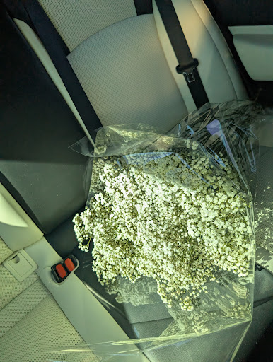 Someone else ended up helping us (Anita) and we showed her specific photos of what I was looking for along with the ideal price range (one cascading bouquet, and 7 bridal bouquets) with a terracotta palette. When we told her our price range she said “for 8 arrangements? The bridal bouquets are going to be very small then.” which we agreed (again, because she had mentioned it before already and it was starting to feel a little awkward) was fine based off of what look I was going for. She took pictures of what we had brought in, and took notes as well. I paid, and we set the time for pickup for 9/2/22 (my wedding date).