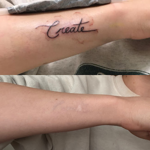 I saw Dr. McClean for my tattoo removal and she is so knowledgeable and made me feel taken care of. Highly recommend seeing her!!! 9 treatments later and it’s gone and I couldn’t be happier. Top photo is right after receiving my tattoo, it’s the only picture I have of it. The small scar was my fault for not being careful post treatment but I still love the results :)