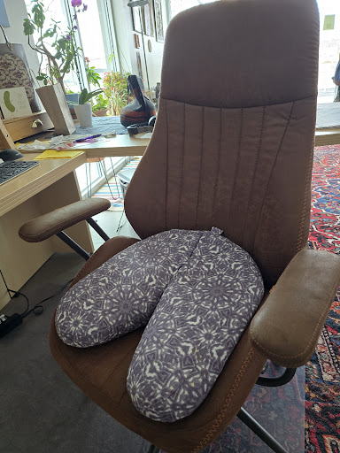 They had a cushion even more perfect than what I originally was looking for. This works beautifully in my office chair. See the slant angle and how it hugs each leg? A...