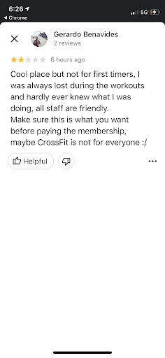 Read moreI got enrolled into a 12 week program, I was told that I was going to have a personal account with a personalized workout and that I will be using that account to log in once I was at the gym, I enrolled on a Saturday and told that I was going to start my 12 week challenge next Monday, I got there on Monday and no one was aware that I enrolled for the 12 week challenge, coaches were very nice and guided me through the class, 2 days after that I received a message from my assigned personal coach to schedule my 1st one on one class ( I did 2 one on one clases) after that I kept on going about 3-4 days a week and kept asking the coaches for help because I was new to all of the CrossFit stuff ( they were always pleased to helped me) , after 3 or 4 weeks I decided to cancel my 12 week challenge program because I was still not knowing when the warm up was done or when the actual workout started what was metcon or amrap and other abbreviations that are common for CrossFit, at this point I wasn’t able to log in to my account because I was not registered in the system, I tried to call for help and even send messages To their Instagram account asking for help but never received an answer, the owner reached to me to get things clear and gave me a 3 month full acces to the gym ( at this point I had paid just $450 for the 12 week challenge) he offered me the last 3 one on one classes for free but I refused because at this point I felt a little uncomfortable going to the gym, all coaches and staff were very friendly and willing to make me comfortable with all the exercises...