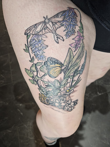 Read moreThe shop is beautiful. It’s located downtown so I was able to park at the gateway and take a short walk to the shop. Each artist has their own space. There’s really interesting art everywhere and seemed very clean. My artist, Valerie, was super helpful. She was kind, took time to answer questions, and was incredibly respectful. She explained the process and made sure to check that I was doing ok throughout the six hours I was there. Aside from Valerie being a wonderful individual, her artwork and tattooing are insane 🤯. All of my previous tattoos are black and gray, so I was a little worried about doing a color tattoo. Valerie tattooed like a legit angel. I dozed off a few times during the black and gray work, she was so gentle. The color was a bit more intense but Valerie continued to check in with me and provided moral support. I’ve gotten work by a lot of different artists and they’ve all been great, however I would rate my experience at Misery & Co quite high on the list. My tattoo is still fresh so I’ll report back once healed. Although I’m sure it will heal beautifully....