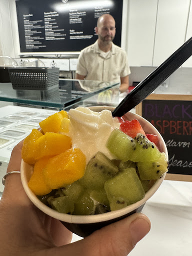 Read moreThe frozen yogurt here is delicious!! I tried the pistachio and plain - they were both sooooo good. I decided to go with the pistachio because of the balance between the flavors of the pistachio and the tartness of the yogurt. I decided to add raspberries, mango, and mochi on top. I was not disappointed. The person I was with got the peanut butter bowl. They couldn’t stop talking about it!! If you like Greek yogurt, you’re going to love this. I will definitely be coming back.