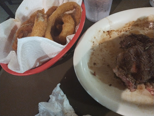 We always come away with having had a great meal here and great service. The atmosphere can be a little hit or miss depending on when you eat there and how crowded it is, how long the wait it, or how noisy and such. The owners and staff strive to provide a good meal and dining experience. We have eaten here many times and I've eaten most things on the menu. I have never had anything here I didn't like and they do an above average job at cooking the meats to the wellness you requested. Their salad bar is outstanding with a varied variety of items but the salad bowls are those sort of small cheaply made wooden- like bowls. They bring in quite the crowd as this restaurant is only opened the latter part of the week and on the weekend nights. Parking can be tricky if you have never eaten here. The restaurant sits on a little hill with a circle type drive and a couple large trees to park around/navigate in and out. There is usually overflow parking in a lot across the road from the restaurant. If it's crowded or tables are full, there is a sign up for tables. The side door is actually where you go in and the front door (near the cash register) is where you exit. There are tables that seat 4 and larger tables, and tables can be pulled together usually in certain areas as well for a bigger group. They have a child's and/or sr meal section on the menu. The food is prepared fresh after ordering. There is only 1 bathroom that is just a single toilet and 1 sink bathroom. It is usually kept clean but the bathroom door opens right into the dining area, so it is sort of unnerving to use for fear a door locking mishap could occur and there you...