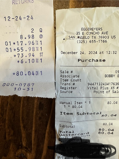 Read moreI would like to thank Eggmyers for giving us some fond memories of our visit to San Angelo. This was our 2nd visit to the store, and will most definitely be our last. We heard so many wonderful things about Eggmyers several years ago, so we made the trip from Abilene with our children to pay it a visit, and drive through the light show along the river. Upon entering the store on our 1st visit, we had the lights literally turned off on us and we were ushered out after 15 minutes inside. We decided to attempt the store again this evening, and again made the trip from Abilene. We double checked the hours this time, and made that our first stop upon entering San Angelo. We browsed for a bit, when our youngest needed the restroom. Upon asking where it was, we were told it was closed for cleaning. I stood there a little in shock, when another gentleman overheard the conversation, child in tow, and stated he had received the same response a bit ago. I placed the items we were fixing to purchase at the front counter and we left. At least this visit inside lasted 20 minutes. While we browsed, I was also made aware of the 'notice' above the tasting samples that stated 'samples are for adults only'. I would like to apologize to the staff of Eggmyers in San Angelo, for bringing my children someplace where they are most definitely unwelcome. It will not...