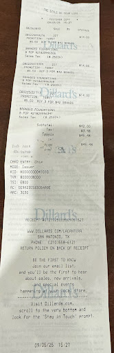 Long story short, I felt discrimination here when dealing with a young sales associate. I came to shop here yesterday 11/18/2024. I was having a pretty good experience shopping until I was about to make a purchase. I came to a young lady at the nearest open register to the juniors dress section. I tried on 3 dresses and the one I ended up choosing to purchase had a tear/rip in the dress. I told the young lady "Hi, I want to take this dress but it's damaged right here. Can you offer me a discount for this?" She looks at the tear, doesn't respond, and continues to examine the dress all over. I follow up with, "Is that something you guys do here?" And she continues to look over the dress a few moments longer and says "Mmm... it's going to have to be full price." I said "Okay..? Is that because..?" She says "It has to be like 'damaged' 'damaged', you know? Like sometimes people are rough when they try on the clothes so yeah. This wouldn't be able to get a discount." I don't know if we were looking at the same dress because it was damaged. I told the lady "I didn't do this to the dress." But i feel like she was being hesitant and insinuating that I caused the damage myself in order to receive a discount. She referred me to Dillard's at North Star Mall. If I'm going to pay full price for a dress I'd rather it be perfect. When I got to North Star, I told them what happened, showed them this picture, and they were shocked that I was denied a discount. Only to find out that a manager is the one who will have the final say on if an item can even be discounted due to damage. By the way, the dress that I drove in traffic for was also damaged at the other location but this was acknowledged by the staff that the damage already existed. Of course these were the only 2 dresses in my size, in San Antonio. I mention this to show that the dress itself has issues and had nothing to do with me. Overall poor experience. If she wasn't sure, she should have called for a manager to ask, but she just denied me without speaking with a manager for whatever reason. No one is going to pay full price for a ripped dress. If it wasn't shipped to the store that way, you can't sell it that way. I'm sure it was marked down after I left. I wouldn't recommend this location. For some reason I'm not able to include my photos of the damaged dress, but I have...