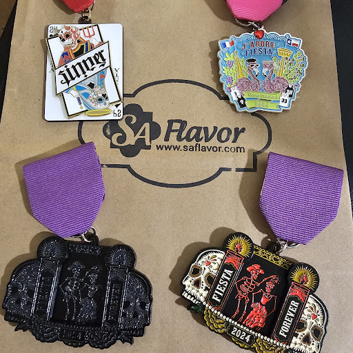 I enjoy the facility of ordering on(securing medal I desire) & order being ready for p/u very quickly. Also too, I always find new medals when I go in. Not to mention sale medals found@ the payout counter, too. I've also bought children's sashes(perfect size & beautifully colorful). My gkids love their sashes with cute cartoon medals I've bought there. Definitely a " go to" location for FIESTA goodies. Awhile back. I bought t-shirts plus caps which I mailed to global friends( they loved it). I've got my global friends hooked on FIESTA...