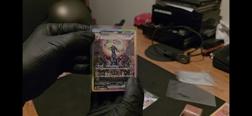 ⭐⭐⭐⭐⭐ A Nostalgic Haven for Pokémon Card Enthusiasts!After rediscovering my childhood Pokémon card collection—thought lost for 20 years, thanks to my mother’s thoughtful surprise—I was eager to dive back into the world of trading card games. Cleo’s TCG Shop, conveniently located nearby, proved to be the perfect destination to reignite my passion.Walking into Cleo’s TCG Shop felt like stepping into a treasure trove for collectors. The shop is impeccably organized, with hundreds of cards ranging from budget-friendly finds to high-value gems. I spent an hour browsing, captivated by the vast selection, and ultimately chose 10 cards, 5 cards for 1$ section to enhance my collection. On an impulsive decision, I also purchased two booster packs—my first in two decades—a Prismatic Evolution and a 151 pack, adding an extra thrill to my visit.Later that day, as I opened the Prismatic Evolution pack at home, I was stunned to pull a SIR Umbreon as my first card—a dream “welcome back” moment for any collector! Cleo’s TCG Shop not only provided an exceptional shopping experience but also played a pivotal role in making my return to Pokémon collecting unforgettable. Whether you’re a seasoned collector or a nostalgic newcomer, I wholeheartedly recommend Cleo’s TCG Shop for its incredible selection, welcoming atmosphere, and the magic it brings to every visit. I’ll definitely be back! Just met Cleo, the owner....