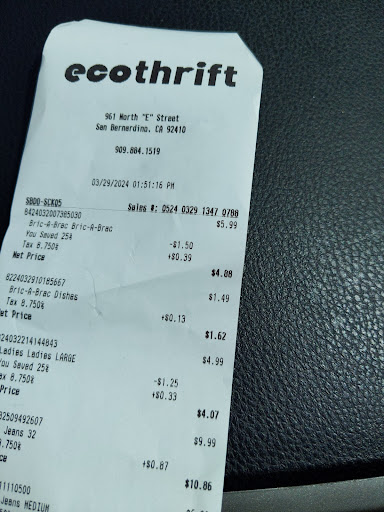 I have been going to the echo thrift on E Street San Bernardino for more than a decade. I went today and left feeling mistreated by the women that work there. I heard them snickering at me as I was looking at clothes. And they spoke Spanish so I heard them talking about me. Then as I would see them around the store they would give me eye rolling. Then when I went to go purchase my things, one of them stood staring at me with another lady and a male. Three people were staring at me as I scanned my items. The lady that was putting away clothes was all of a sudden just standing there at the scanner registers giving me the same attitude that she has been giving me throughout the store. For some reason I felt like she had told the lady manager that is always standing at the registers something bad about me because even she gave me some attitude which she has never has done in all the years I have been going. I told them why are you all staring at me? I literally always come here. The lady manager who has been there for many years answered me with attitude and said we are not staring at you. The male worker was standing literally I foot behind me and the two ladies were standing 3 feet behind me. I don't know what is going on with this new management, but I do see a surplus of women workers putting away clothes and it seems like there is now more of a gossip culture developing and therefore there is now an insurgence of negativity happening because of it.This has to stop and upper management needs to be aware of what is happening with their women workers and how they are treating other women who are shopping at Echo Thrift. I have added my receipt to show day and time I was there. I was there on Friday, 3/29/24 at 1:51pm. Next time I go to Echo Thrift I will ask what is the name of the women I witnessed snickering at me and talking about me as well as the lady at the register that allowed for the intimidation at the register to happen. I will post their names here so upper management and the owner knows exactly who I am...