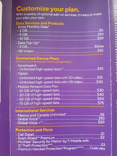 I then went into my account online to realize that he charged me $120 for 4 lines and $6 premium handset protection as well as $1 unlimited directory assistance. He made no mention of these items in store and even asked me if I wanted the 4 lines for $100.