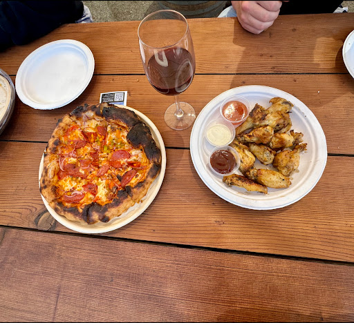 We did a wine tasting and ordered pizza and the wood fired wings, all of which was insanely delicious! I will definitely be trying the salmon salad as I saw a few people order it and it looked incredible!