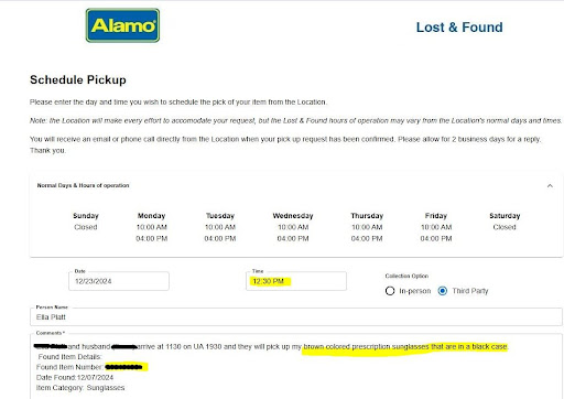 UPDATE 1/14/25- as "Jean" who replied from Alamo said to do, I contacted Customer Service who said that a manager would contact me and assured me this has been passed on to the right person. Still 10 days later and now 7 messages later, I have still not received a single phone call nor response from anyone, let alone a manager. This is THE most ridiculous and frustrating situation I've ever encountered. When I asked Customer Service what is your protocol for logging missing items she simply said "oh every situation is unique and we aren't responsible for lost items "-WHAT? don't you have a standard of operations that employees must follow. I know you aren't responsible for lost items but when San Diego airport itself has over 454 pages( 25 items per page) of logged "found" items I would say there are a lot of people who leave items behind. I sincerely regret my decision to rent through this company. When people leave items behind that are very important it is really disappointing and the flat out disregard to help them. .......Still waiting for a phone call or...