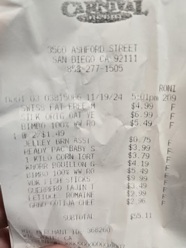 Read moreLOVE this store! Carnival is my go-to store for so many things! Itâs not just a Mexican store, but also Middle Eastern (and even some Asian goodies, like the eggrolls and teriyaki chicken), with some of the best kebabs, hummus, tzatziki sauce, and even garlic sauce (which is absolutely the best!), that you will find in San Diego. I eat papaya every day, and they have the best papaya around. I absolutely love their smorgasbord of hot dishes to scoop up and bring home for a quick, no fuss, delicious, authentic Mexican or Middle Eastern mealâ or even meatloaf and mashed potatoes or fettuccine Alfredo, to name just a few. The pre-packaged rice and refried beans, along with warm tortillas made on site, and a tub of perfectly-seasoned carnitas, or a whole, tender, roasted chicken, is always a reliable staple. The hot soups are amazing, tasting like they came straight from abuelitaâs kitchen! Another favorite: for a delicious, quick breakfast or brunch, is to buy a large cup of the shrimp cocktail and a nice, ripe avocado, take it home, sprinkle a few drops of sweet-spicy habanero chili on...