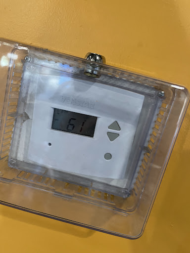 The facility was hot and humid/stuffy during the 2024 summer (rising temperatures to 76 degrees) and now unacceptably cold (61 degrees on the thermostat - see photo). We work out in layers and inhale cold air during our intense individual workouts. The issue has been discussed with multiple people in charge (for over 2 months now), and yet zilch. Nothing. Additionally, one of the AC units -covering a whole corner area upstairs- is completely out of order and has been blowing cold air for a looong time (maybe a year?). "Want frequent summer UTIs, or a winter sinus/chest infection? Welcome to Crunch, Carmel Valley!"