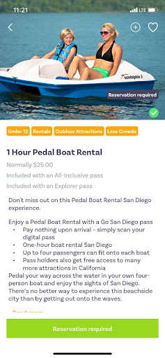 Read moreWe purchased the 5-day inclusive pass during our San Diego visit and used the free app to show our admission tickets which made it convenient. In addition to the Zoo, Safari Park, and Birch Aquarium, we visited Seaworld twice as my toddler wanted to see the whales again so that was nice that the pass allowed this. This was the one place we had to also have reservations for and show copies of our COVID vaccination cards since we were out-of-state visitors. Another day, we took a cab to the New Children’s museum which says is covered in their app, but apparently the museum no longer accepts the Go SD Pass (since over a year ago). So we were stranded in downtown early Saturday morning with nowhere to go and nothing to do, my toddler had to use the restroom. I called the Go SD Pass right away and they were not helpful at all, I brought my phone to the museum for them to discuss, again 0 resolution, but they did offer to refund 10% of the card which doesn’t even cover our cab fare one way. Luckily, the museum manager was so sweet and finally let us in even though they were completely booked. Go SD was supposed to call me back to “resolve” and explain the issue, nobody did, I called them back and after being transferred around someone finally said that their website has a more accurate and up-to-date list of what all is included with the pass. I didn’t even know that was a thing, I looked and in their defense it wasn’t listed on their website. It still is listed on their app among other things (I compared once I was told about the website) so beware. Another issue we had was at the Safari Park (which was amazing and so much worth the drive... don’t miss it!), the pass said it gets you an African tram tour and access to the cheetah run. Both of these things haven’t been running in over a year. I believe due to COVID, but still you would think someone could update their app and website more often than once a year. Overall, yes, the pass saved us a little money, but I was so upset about being stranded downtown. I am not recommending.