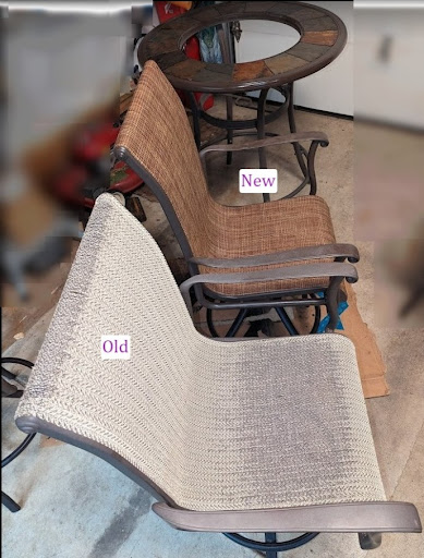 We came to Hauser’s Patio to get some swivel/rocker chairs fitted with new slings. We had done this work ourselves in the past, but it is very hard work, and easy to damage the chairs. I chose and bought slings from a different supplier online, but Hauser’s were very happy to work with these.