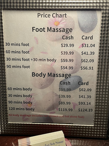 I like that this place is conveniently located and very easy to park at. Itās very clean and they do just foot massage or full body. They can also accommodate two people at the same time, or like a couple. I think that most of the practitioners Iāve seen here, and Iāve probably been here. 25 times are pretty good. Some of them are actually excellent. It seems like the ones that are the best are the men, and it also seems that they donāt stay around for very long. Iāve been going there since 2020 2, and it seems like Iāve seen three really good male Massage Therapist come and go. I feel like they need somebody with better English skills to be able to accommodate requests. They use Google translate so that works, but they donāt always follow the request that you give, so I would be Very sure to reiterate what it is you do and donāt want. Overall, I do like this place very much and gave it a five star rating because they always accommodate me, theyāre always clean and very friendly, they seem very respectful and very caring, and the therapist Iāve seen are very well trained. Some are just fantastic. Iāve read the reviews and it seems like some people have had issues with them, but myself I feel Iāve had so much Massage in my life, and if the practitioners doing everything they can to accommodate me, I feel good, and with this place some of them are so skilled theyāre like top-of-the-line in terms of how much they can actually help you with. I would say try it out with a foot massage and if youād like it go back. I will definitely keep going back because even though I live 30 miles away I really feel like itās a good value and Iād like the practitioners and I like the fact that itās so clean...