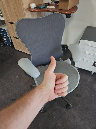 cut to my lunch break today and i find this place that sells new and used office chairs among other things. these guys have a ton of chairs in their showroom. I asked to point me to the bigger chairs for bigger dudes and they brought me a herman miller that fit my needs exactly. super happy to have come here and having sat in this brand used chair for the past 2 hours i can tell you that i notice an immediate difference in my comfort for the better. thanks again fellas, ill send my...