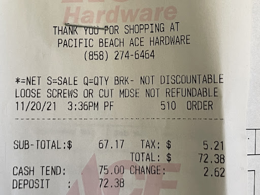 Read moreWorst hardware store I've ever been to. They couldn't have cared less. Sent me down the wrong isle 3 times. Refused to look up the item I was showing them from the website. Also refused to come show me where they were talking about. Not that they listened to me. They kept sending to items that I was not needing. Finally found it on the back wall in an overstock area. Then the guy in the back had rude comments. I responded with "correct shouldn't be that hard." Save yourself the aggravation and go to home Depot in point Loma. Very close and they have everything. Plus the staff is amazing. I will never return to this...