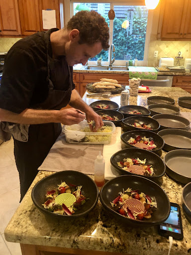 From the moment he walked through the door, I knew I was in good hands. He brought everything necessary, from the freshest ingredients to tableware designed for presentations that delight. He was extremely well organized and yet flexible and sensitive to our needs.